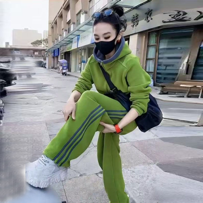 网红时尚休闲运动套装女秋冬加厚时髦洋气减龄连帽卫衣开衫两件套