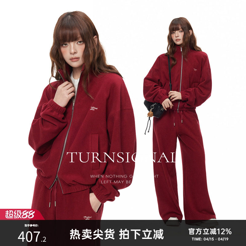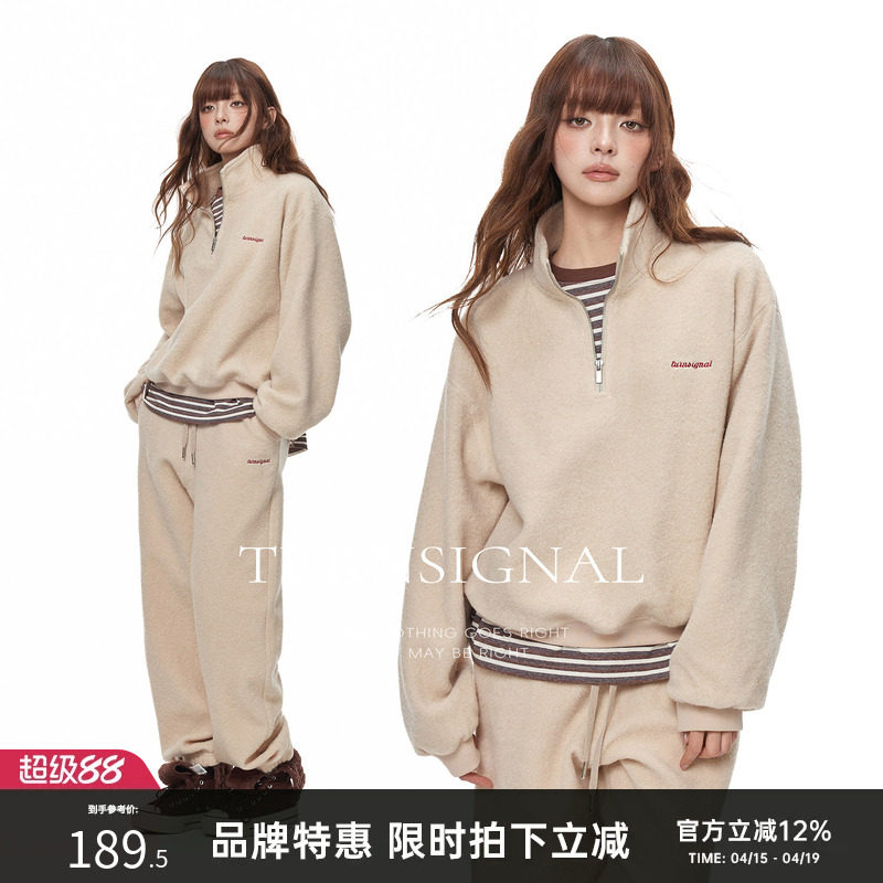TurnSigna半拉链毛呢卫衣卫裤套装女秋冬加厚休闲宽松运动两件套