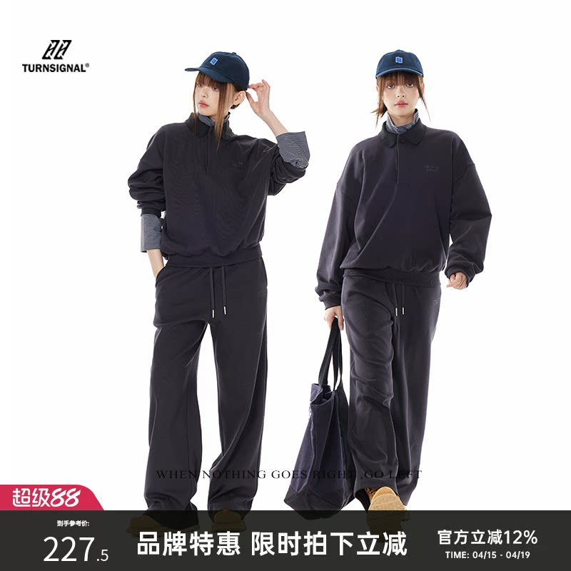 TurnSignal潮牌POLO领卫衣长裤套装女秋冬加厚加绒休闲运动两件套