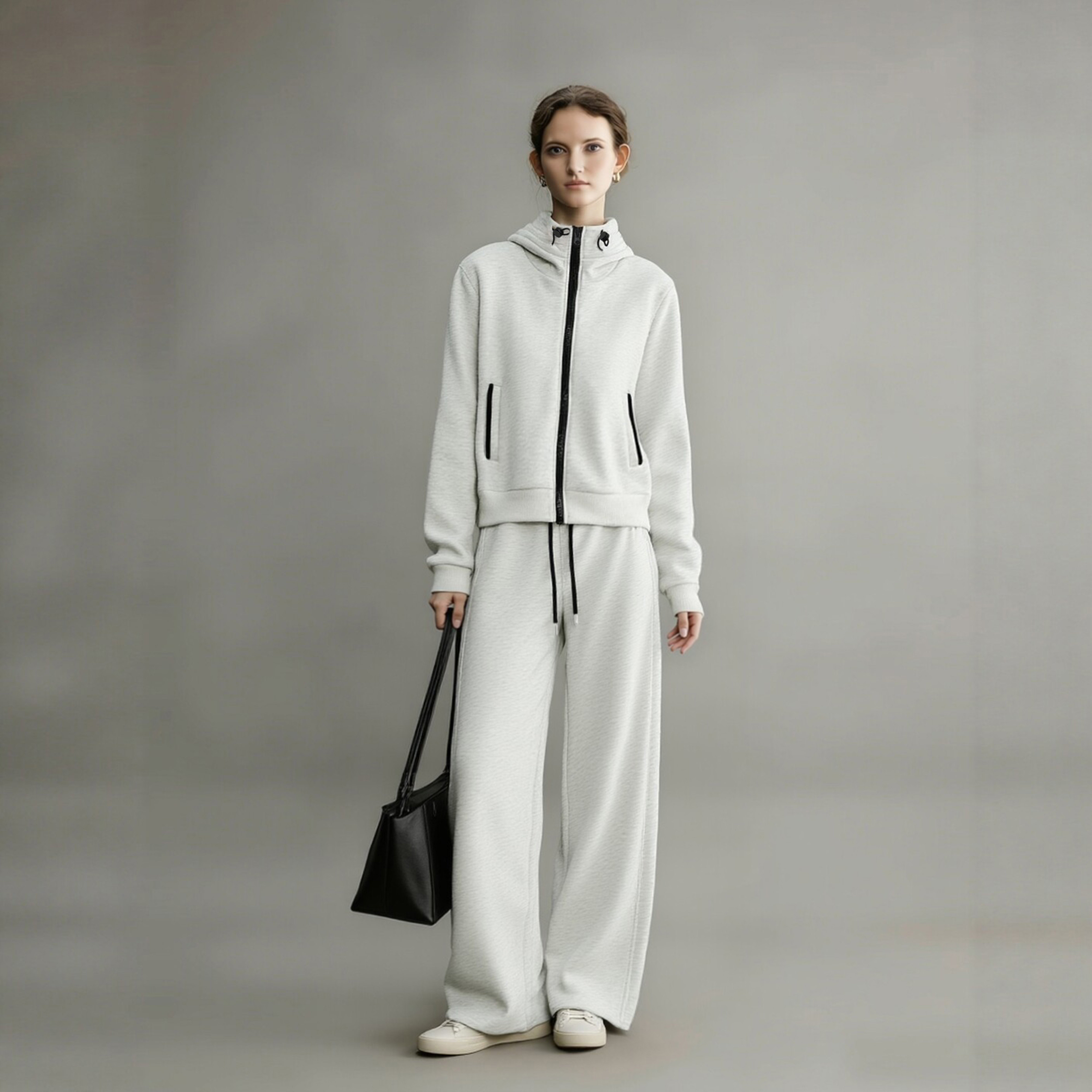 YMER加绒上衣阔腿裤两件套女2025冬加厚连帽拉链休闲运动套装0916