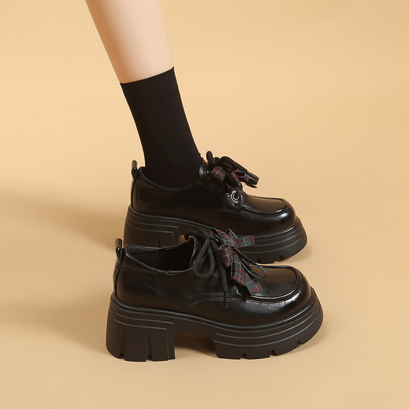 2026春季新款英伦风小皮鞋女真皮松糕厚底乐福鞋高跟7cm增高单鞋