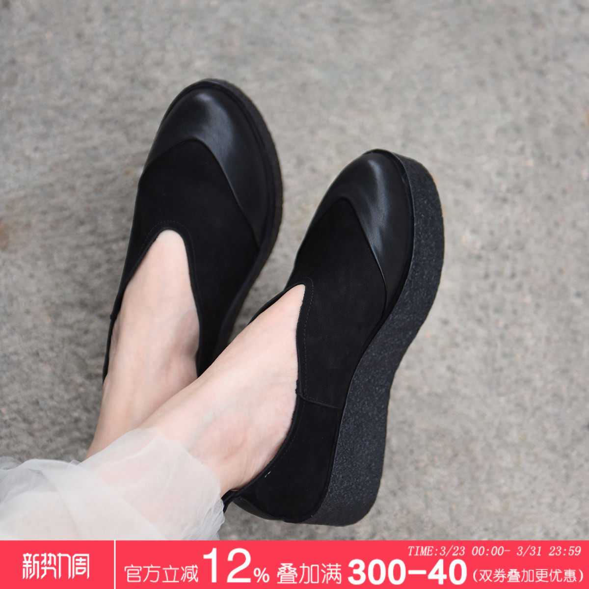 Artmu阿木原创春季新款复古厚底单鞋女真皮松糕鞋女一脚蹬妈妈鞋