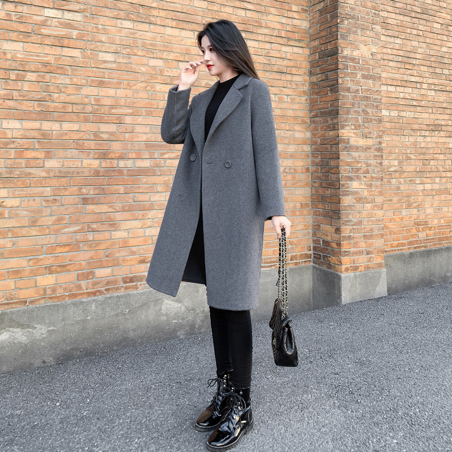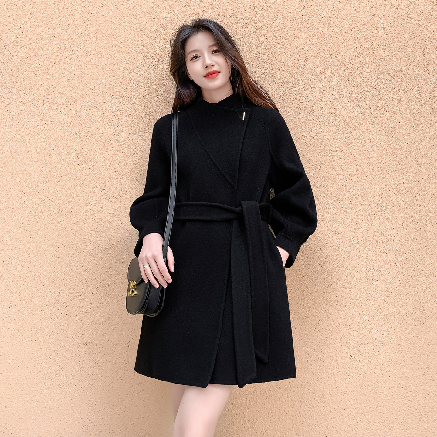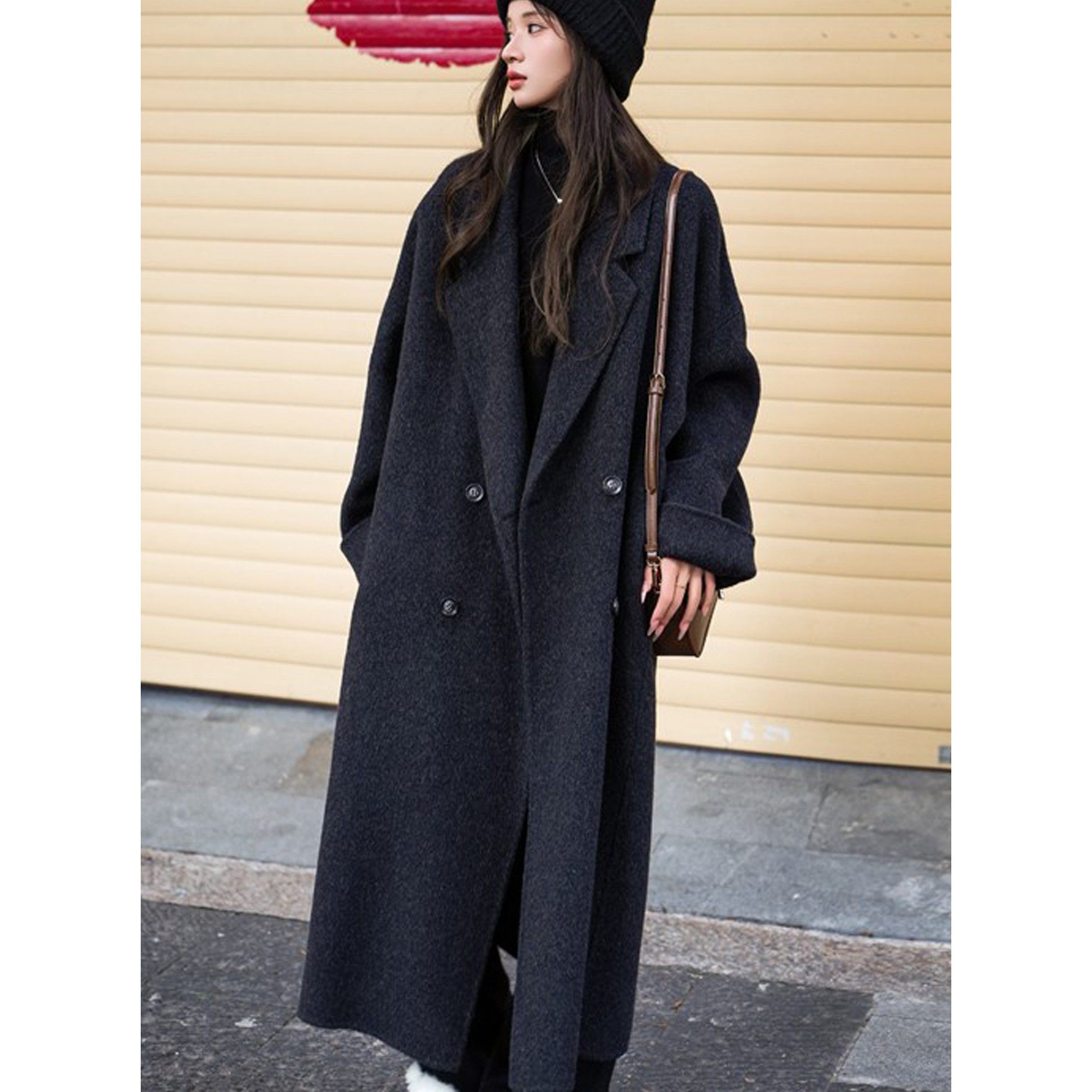 - 黑色呢大衣女中长款
