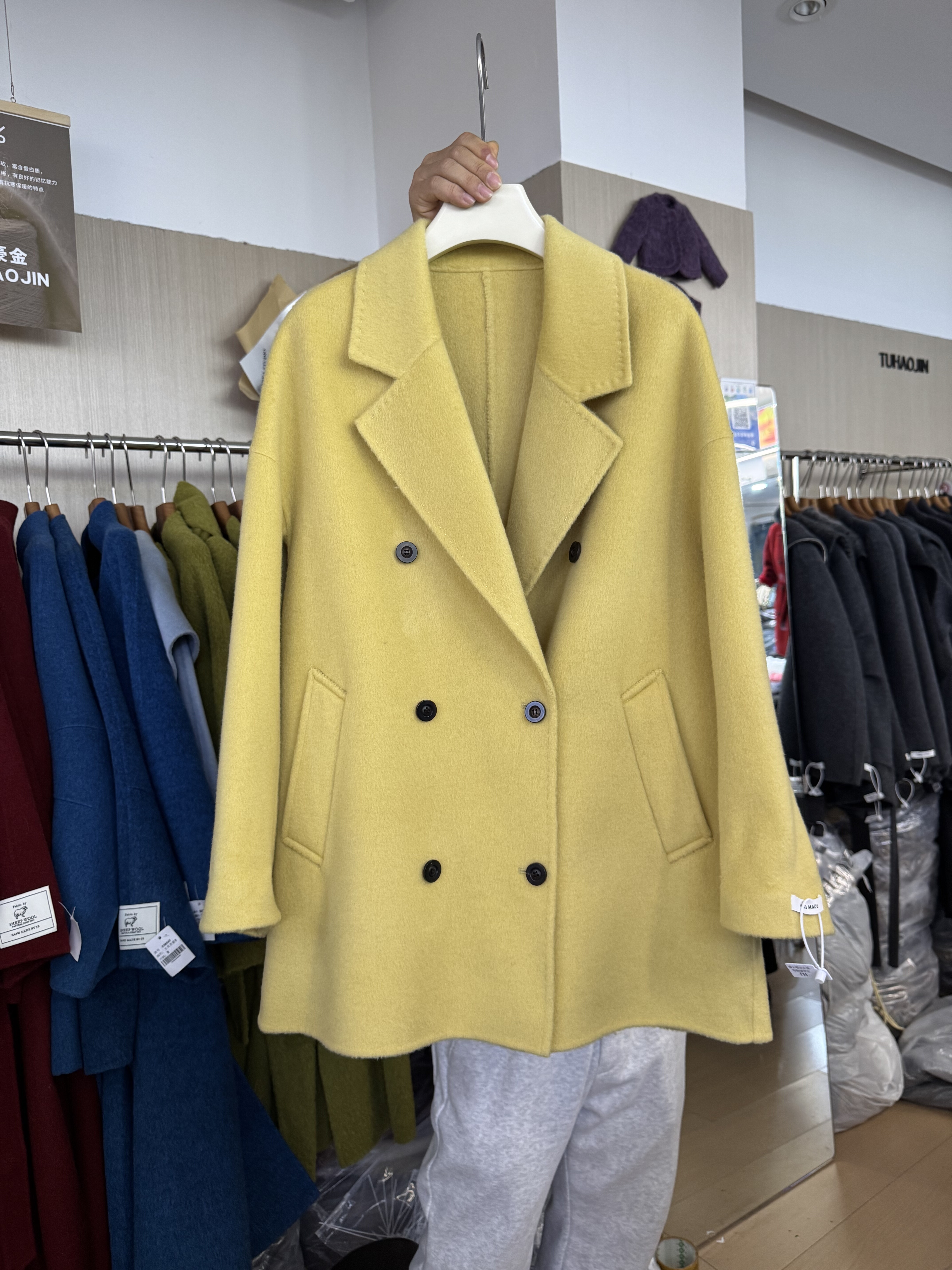 【20羊绒】漫沿manyan新款纯手工双面羊绒大衣女宽松短款毛呢外套