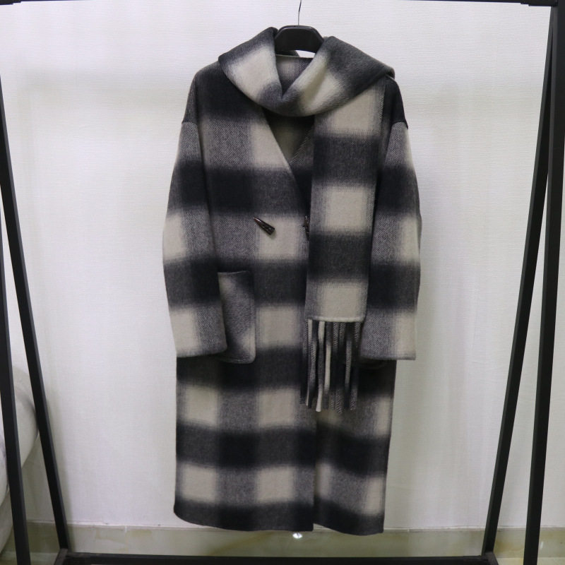 2025秋冬新款时尚百搭格子双面羊绒大衣女宽松阔版毛呢外套潮