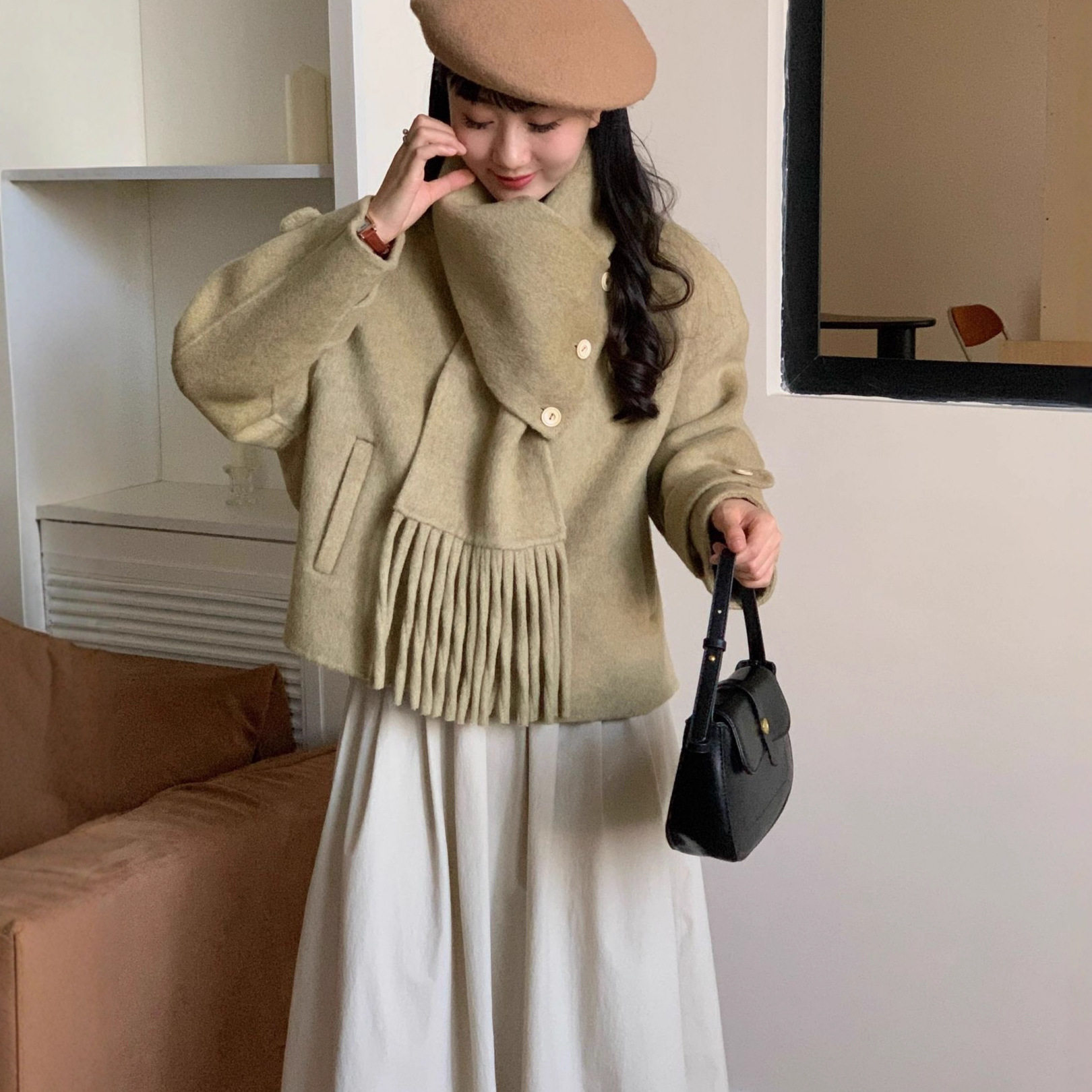 - 中长款毛呢大衣