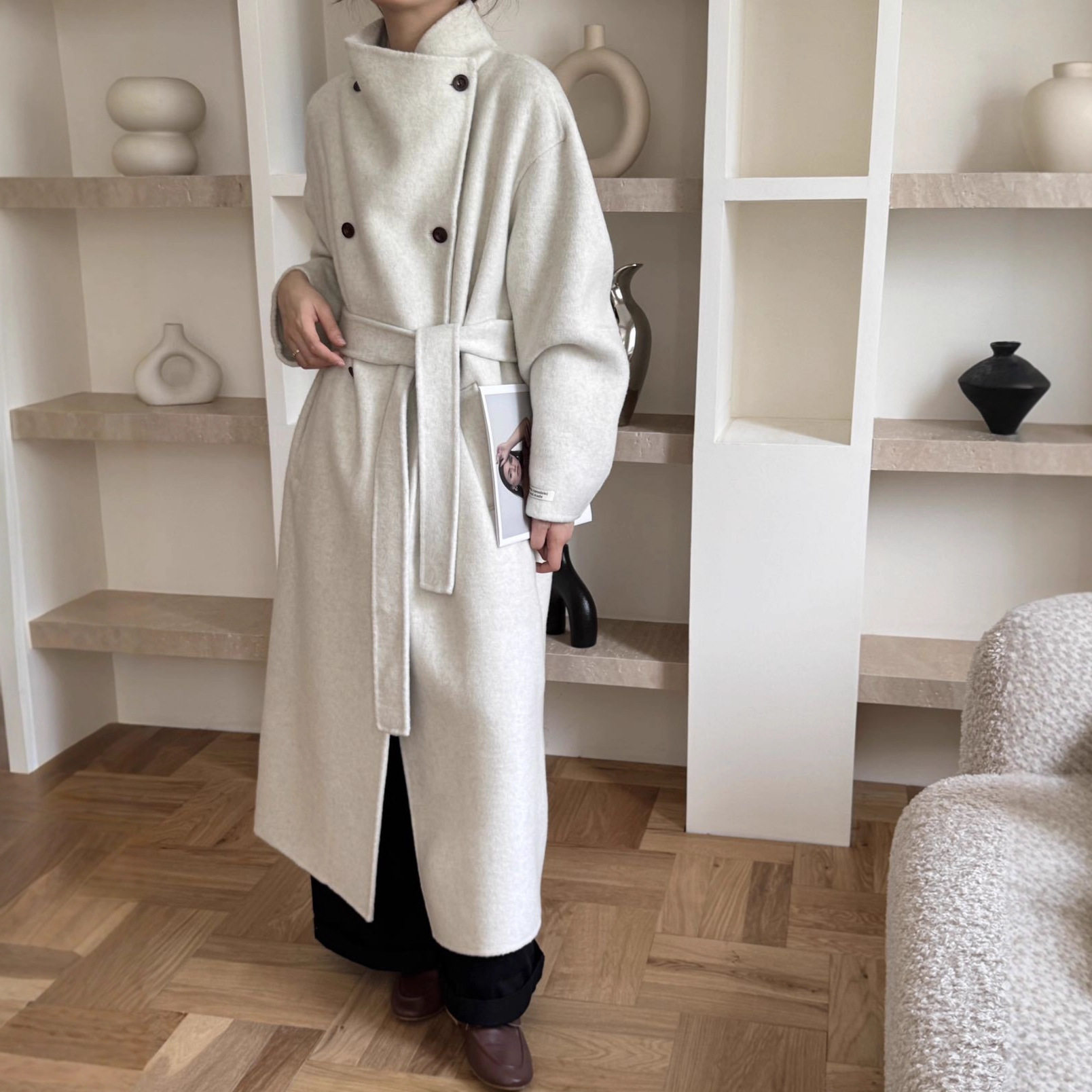 - 收腰呢大衣