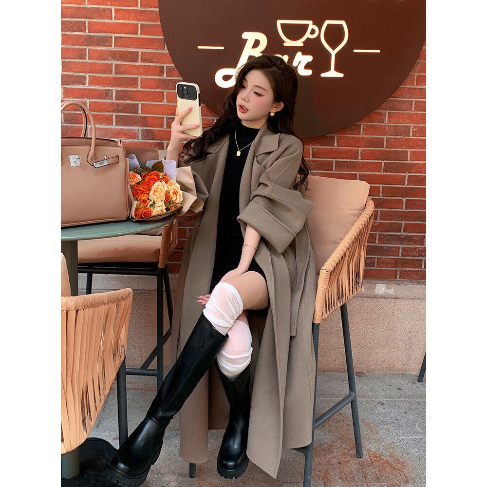 25秋冬长款加厚双面羊绒大衣女宽松赫本韩系高品质小个子毛呢外套