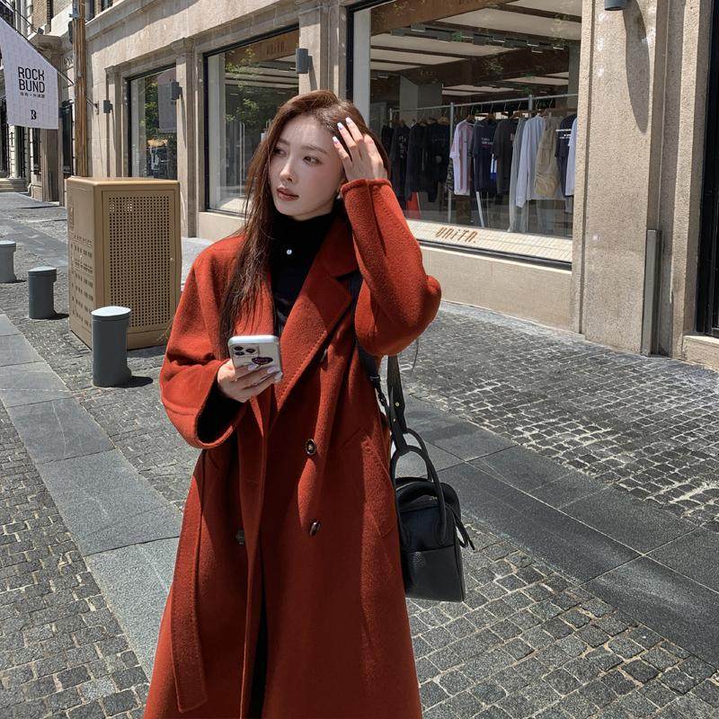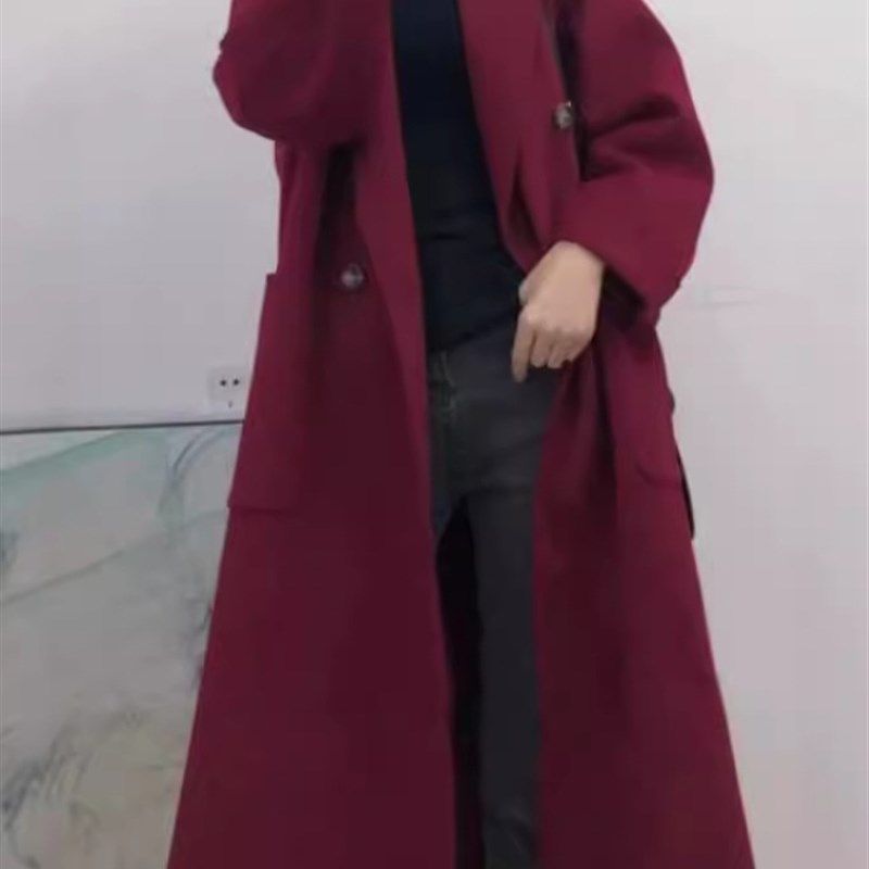 高个子大衣801款安克拉红双面羊绒大衣女宽松加厚中长款毛呢外套