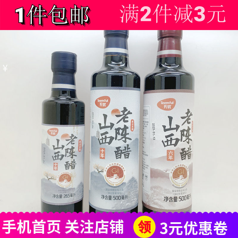 天优十年山西老陈醋265ml2瓶六年山西老陈醋500毫升 酿造食醋包邮