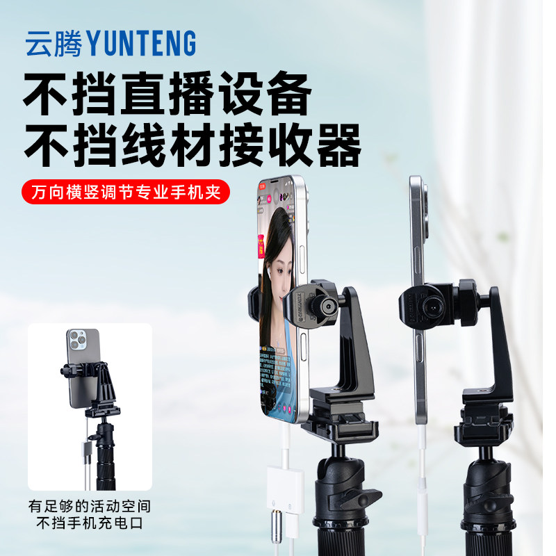 云腾358型号旋转横竖拍手机夹子大号抖音直播支架八爪鱼三脚架热靴转接vlog拍摄视频平板通用俯拍横杆固定夹