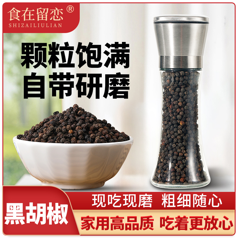 黑白胡椒粒研磨器特级食在留恋精选海南黑胡椒原味现磨胡椒粉健身
