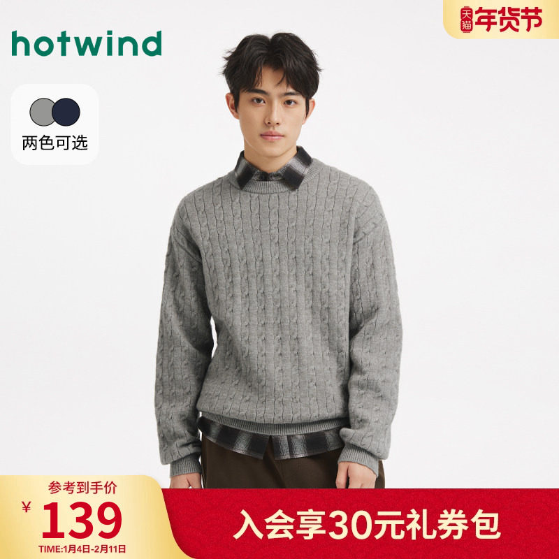 热风男士针织衫毛衣2025年冬季新款老钱风绞花针织衫保暖打底毛衣