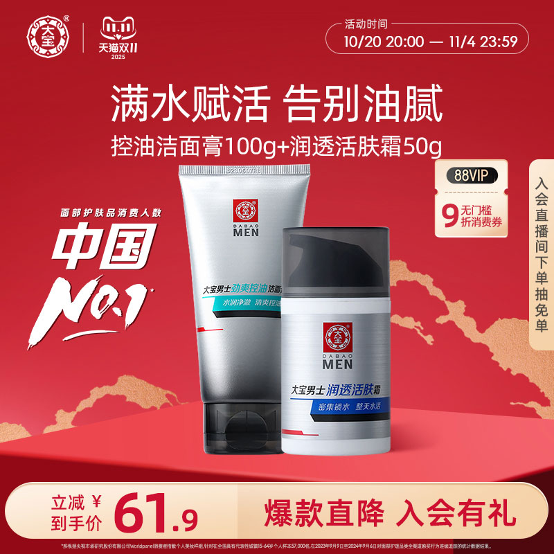 【双11立即抢购】海洋至尊水乳套装补水控油洗面奶爽肤男士护肤品