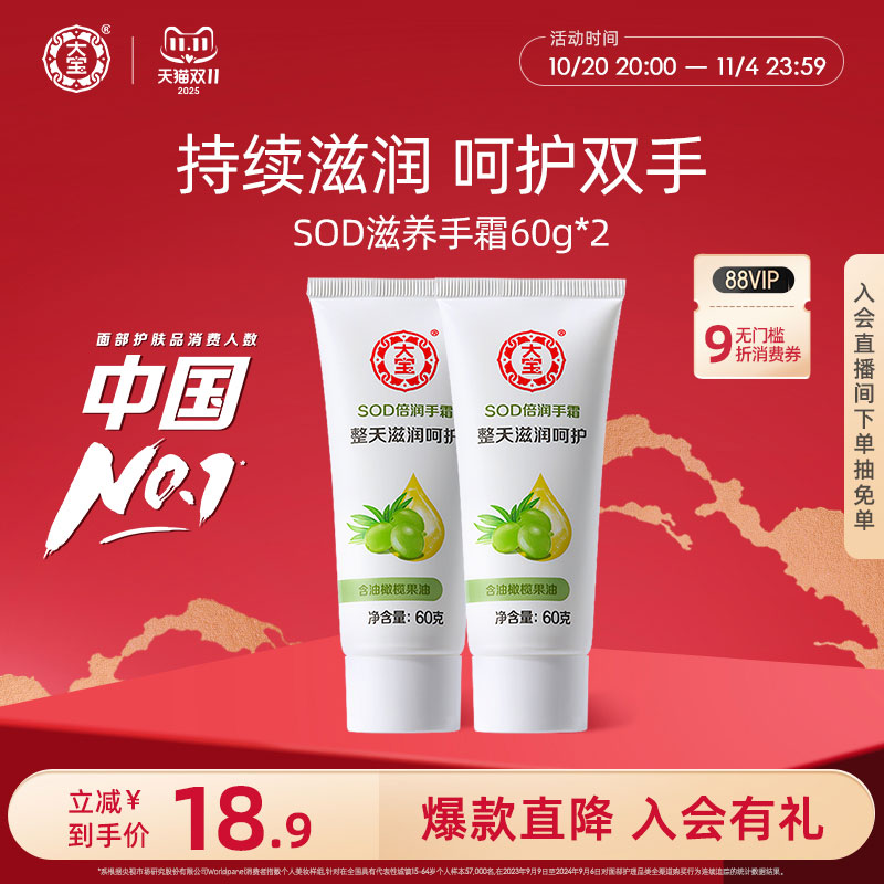 大宝SOD倍润护手霜60g*2滋润补水保湿套装女男士干裂粗糙护理官方