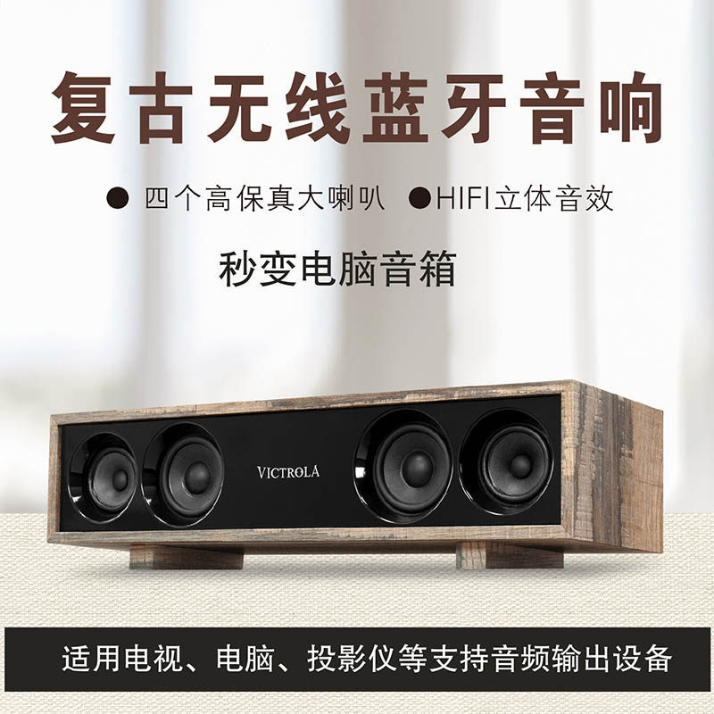 木质蓝牙音响台式电脑音箱AUX一体音响大功率大音量长条形高音质