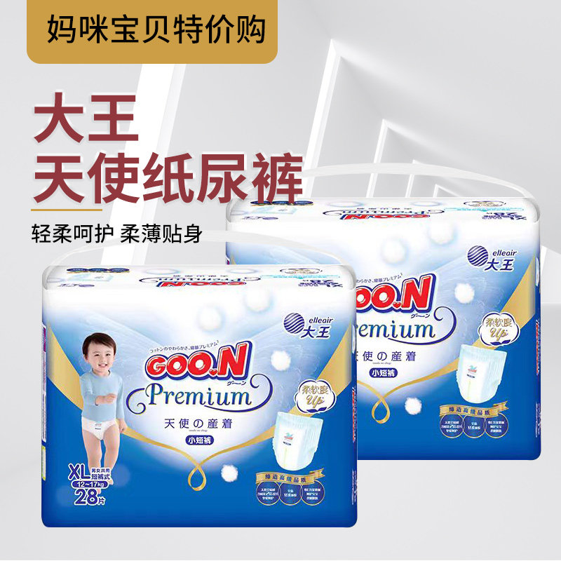 大王天使精萃短裤L/XL/XXL/XXXL*2包婴儿透气尿不湿纸尿裤拉拉裤