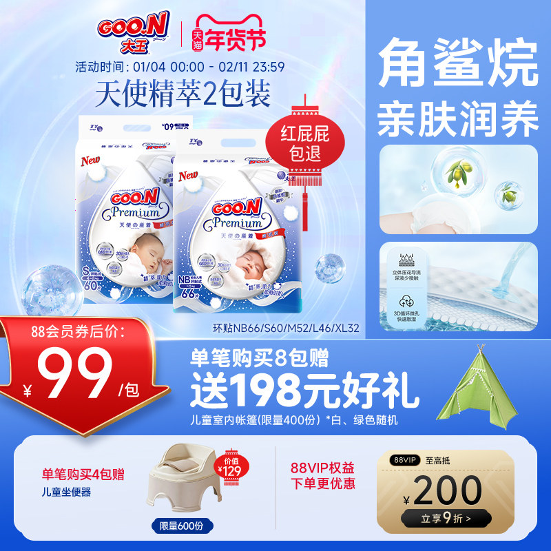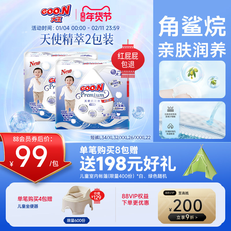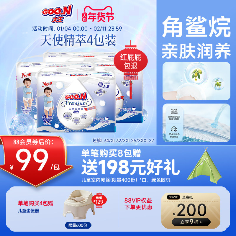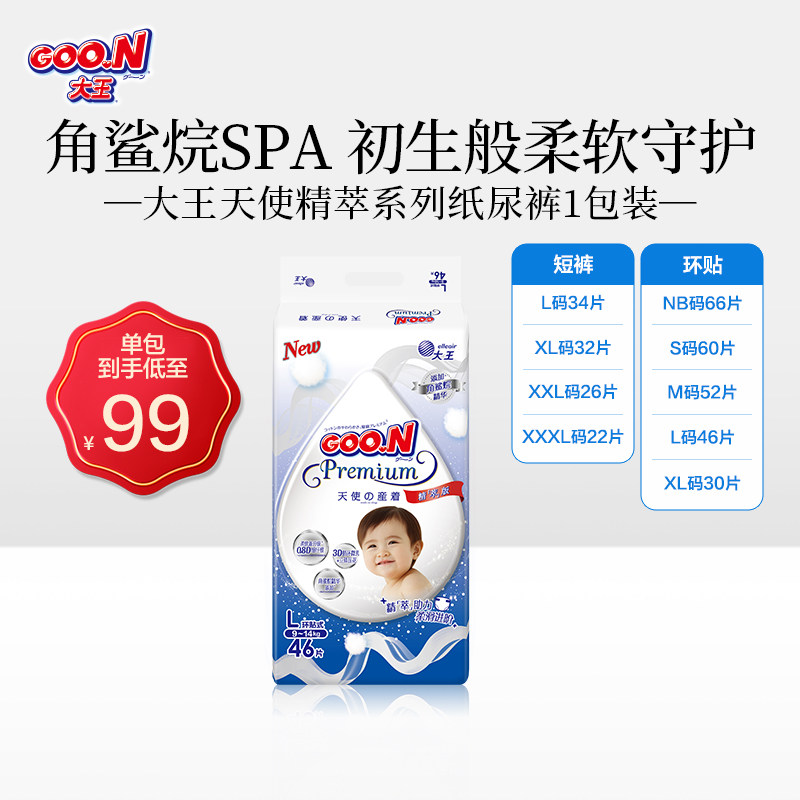 【年货节现货】大王升级天使精萃全尺码4包短裤尿裤婴儿超薄透气