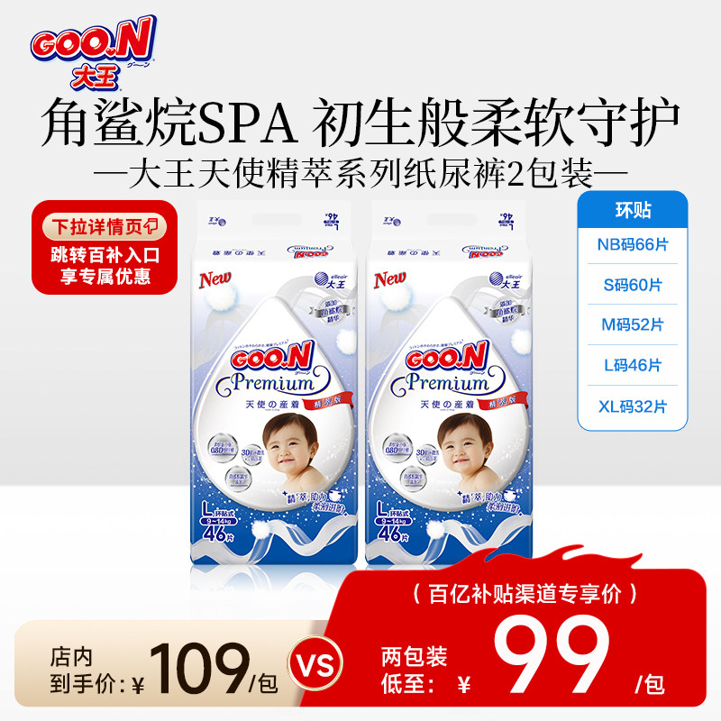 【官方】大王天使精粹婴儿纸尿裤尿不湿拉拉裤小内裤NB-XXXL码2包