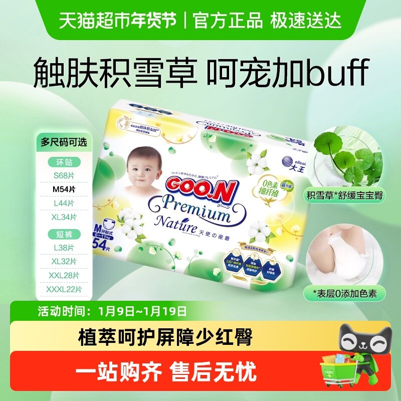 【官方】goon大王天使自然之恩婴儿纸尿裤尿不湿小短裤NB-XXXL码