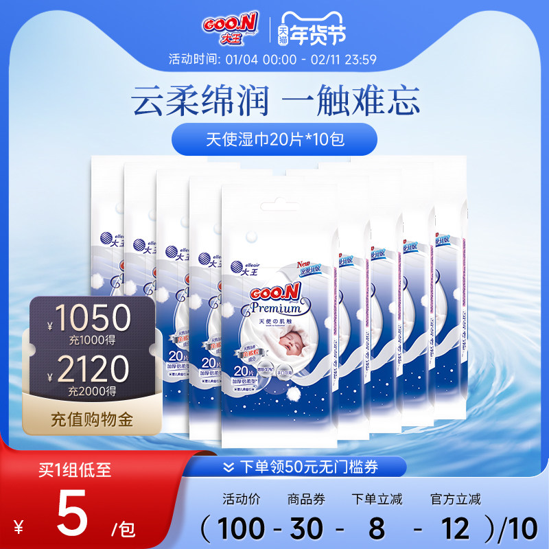 大王天使婴儿柔湿巾新包装60抽*4包新生儿湿巾手口可用柔软亲肤
