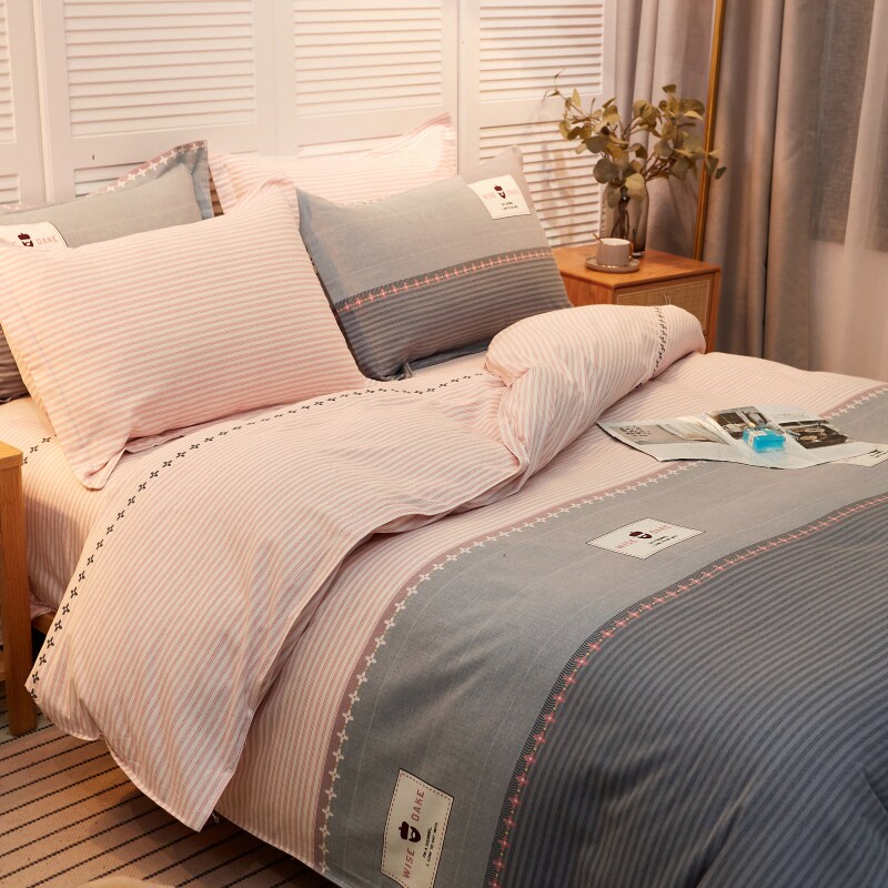 北欧ins全棉纯棉床上用品四件套磨毛简约夏季床单三件套学生被套