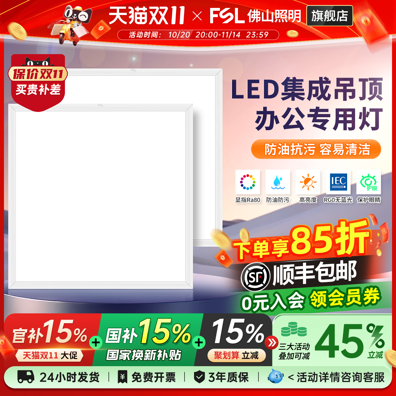 佛山照明LED面板灯600×600办公吸顶灯石膏板铝扣集成吊顶平板灯