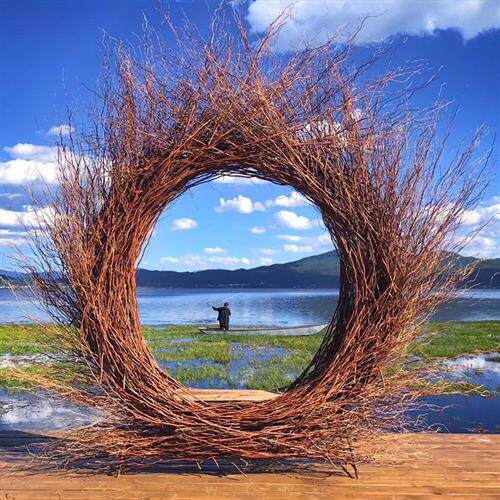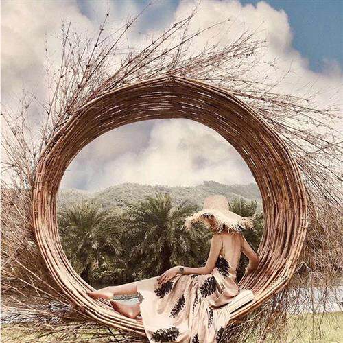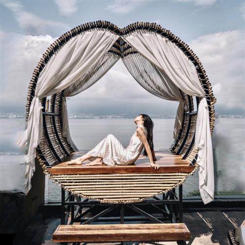 巴厘岛户外藤编躺床创意婚纱摄影民宿景区抖音拍照款网红鸟巢秋千