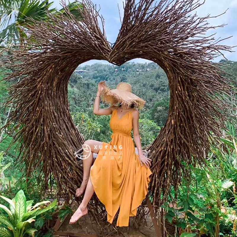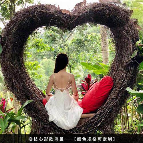 巴厘岛网红创意鸟巢秋千户外同款爱心吊篮景区打卡婚纱照拍摄道具