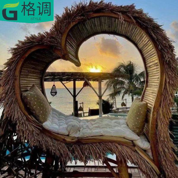 巴厘岛网红鸟巢编藤吊椅民宿景区打卡拍照爱心款婚纱秋千吊篮户外