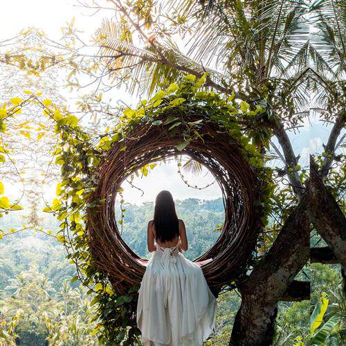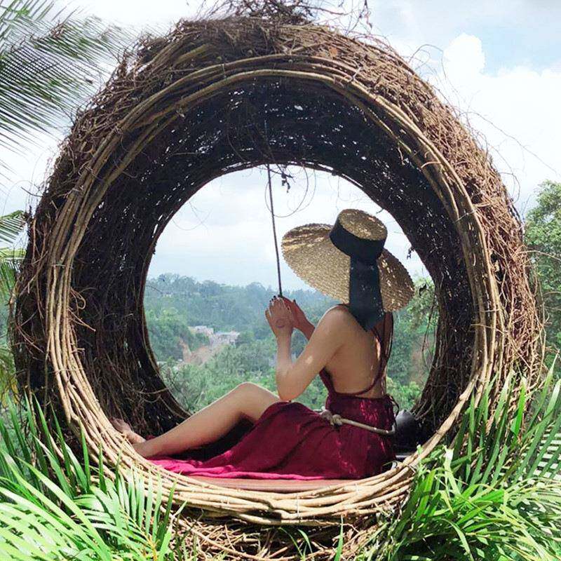 巴厘岛网红打卡鸟巢景区婚纱拍照创意秋千鸟巢吊椅民宿藤编织吊篮