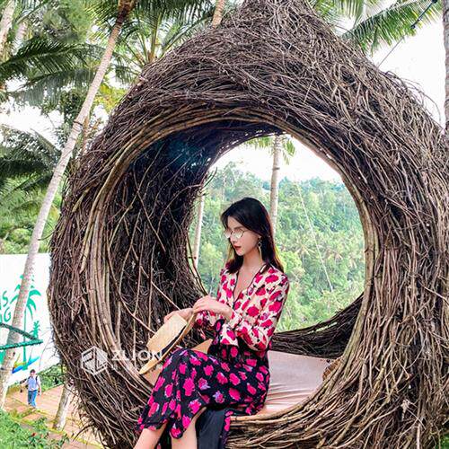 网红巴厘岛鸟巢景区婚纱拍照创意落地室外鸟巢吊椅民宿藤编织吊篮