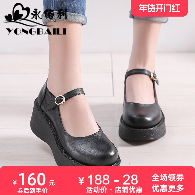 2025春秋新款复古大头皮鞋软底真皮松糕坡跟高跟单鞋女厚底皮鞋