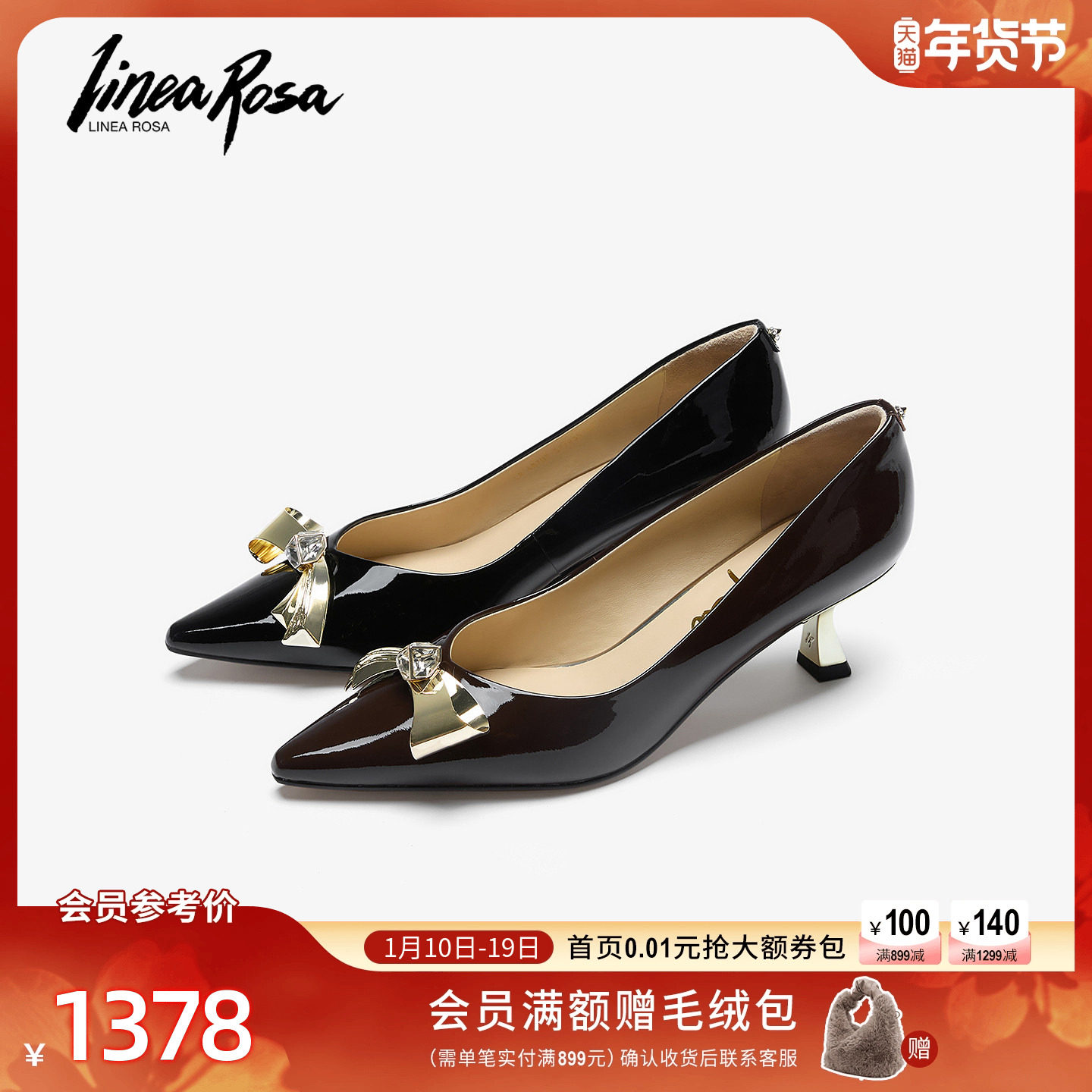 恋尚萝莎2025秋冬商场同款新款漆皮黑色尖头细高跟单鞋女6T48702