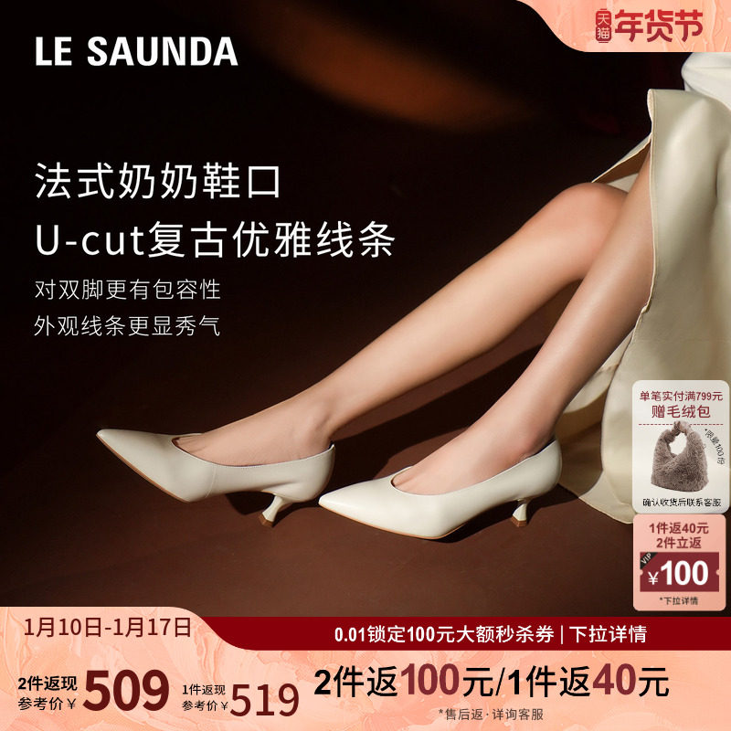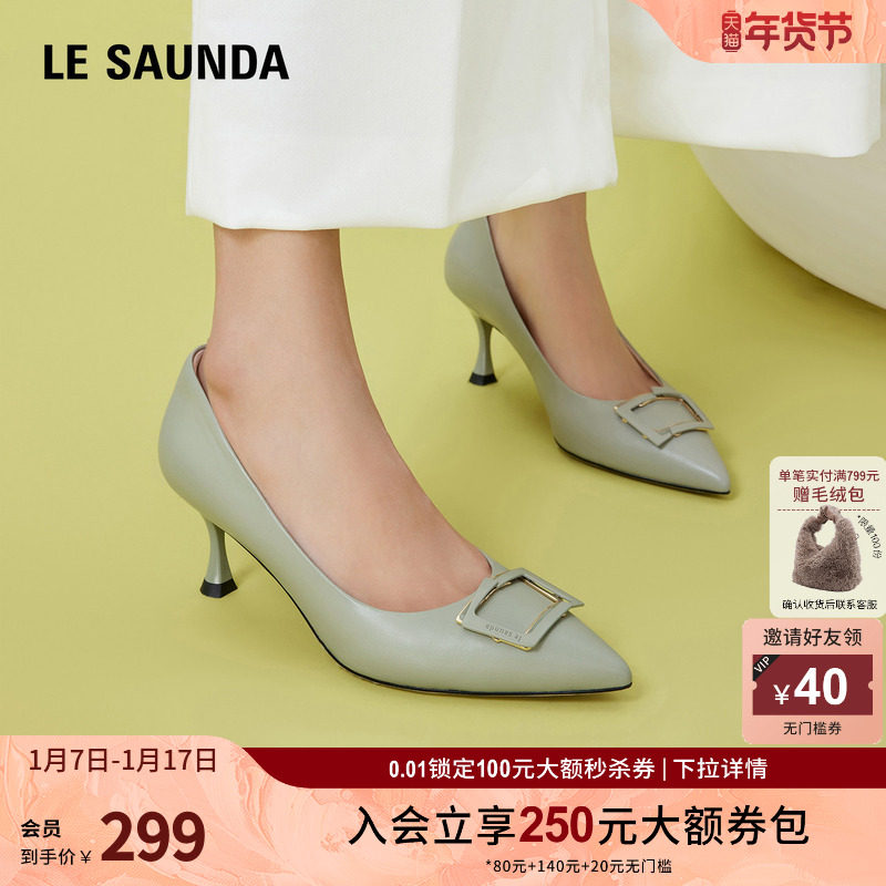 莱尔斯丹奥莱清仓特卖 通勤尖头纯色浅口中空细高跟单鞋女5M51404