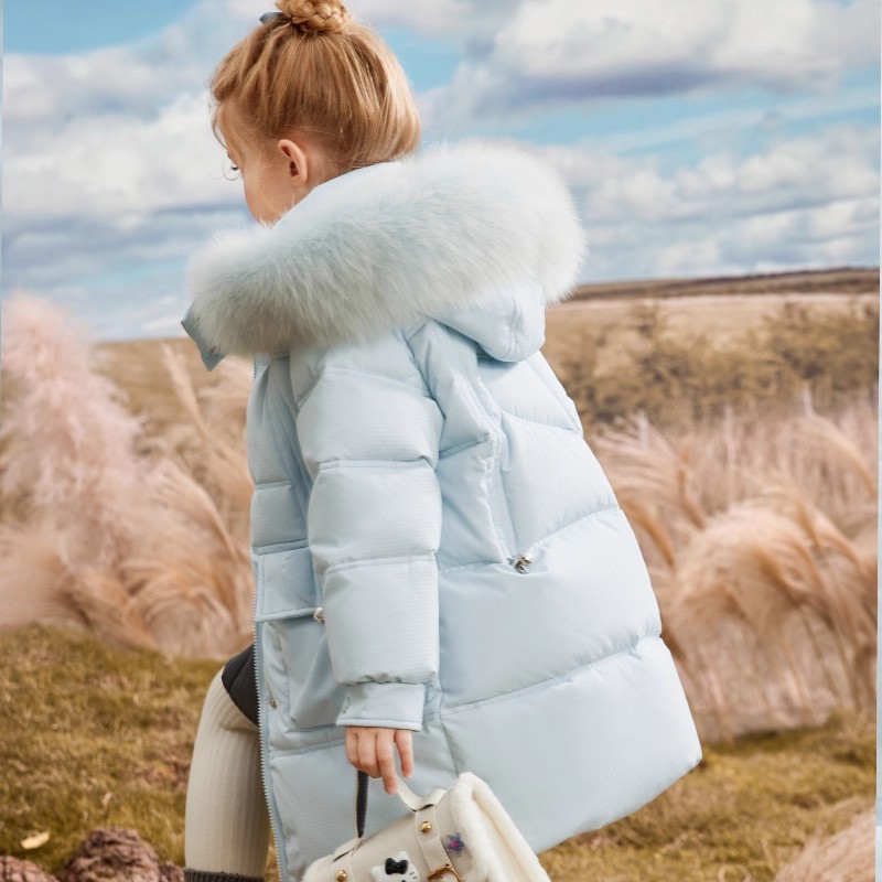 儿童羽绒服女童中长款韩版中大童保暖加厚大毛领白鸭绒童装外套冬