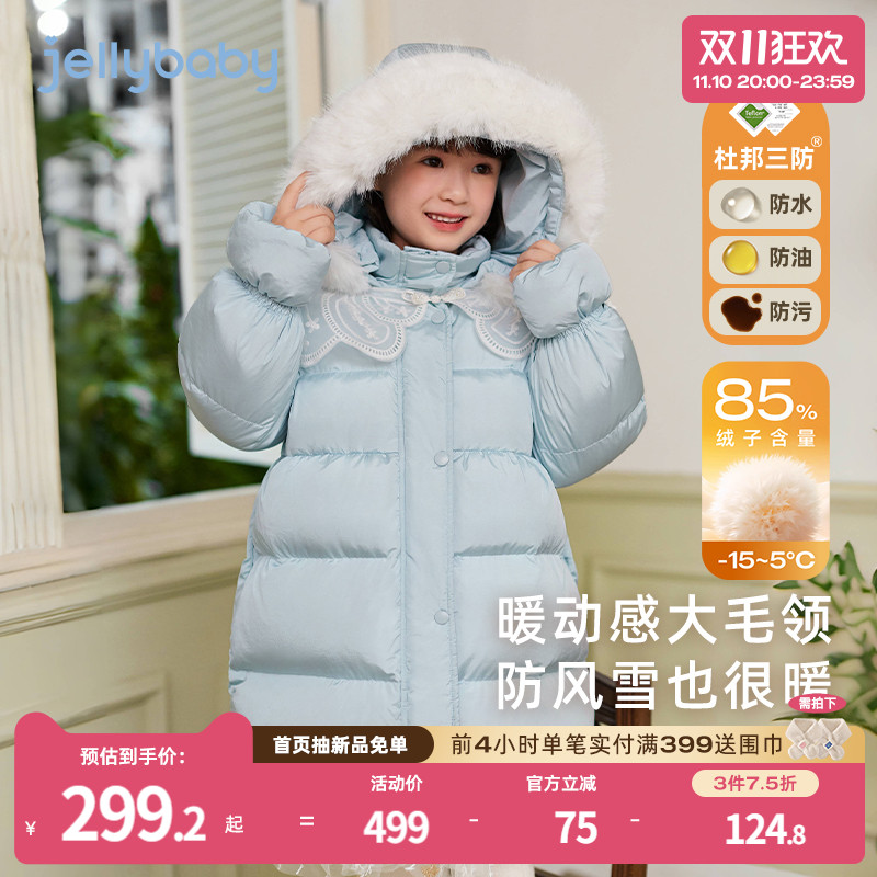 [三防锁温]女童冬季羽绒服小童连帽毛领潮宝宝中长款儿童冬装外套