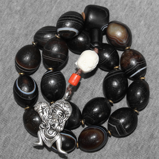 玉鉴 传世精品收藏藏传密宗千年老缠丝玛瑙珠子老佛珠老琉璃念珠