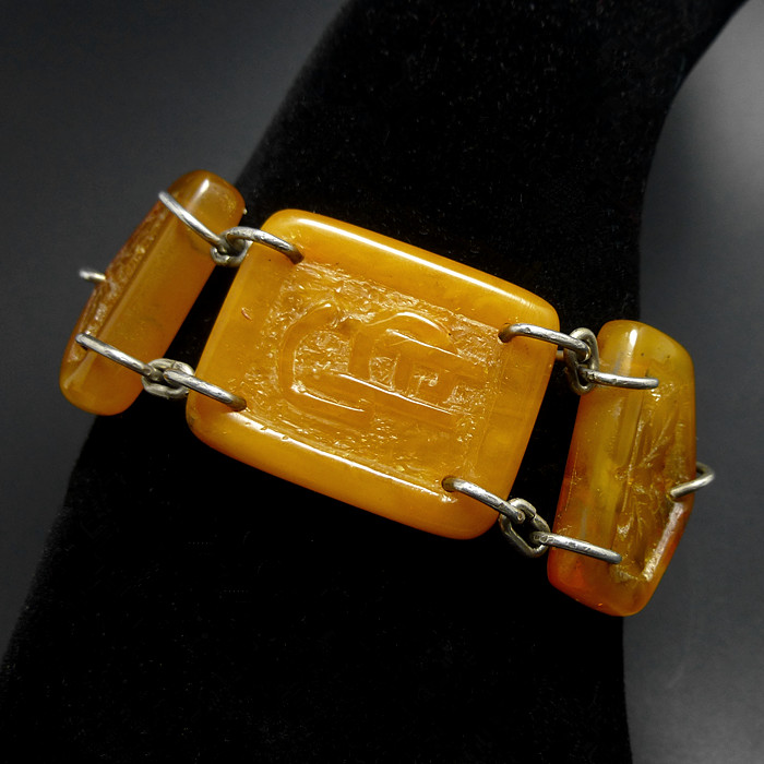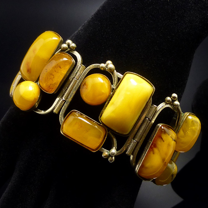 欧洲回流 精品收藏银镶天然蜜蜡手排手链高端奢华孤品手钏典藏级