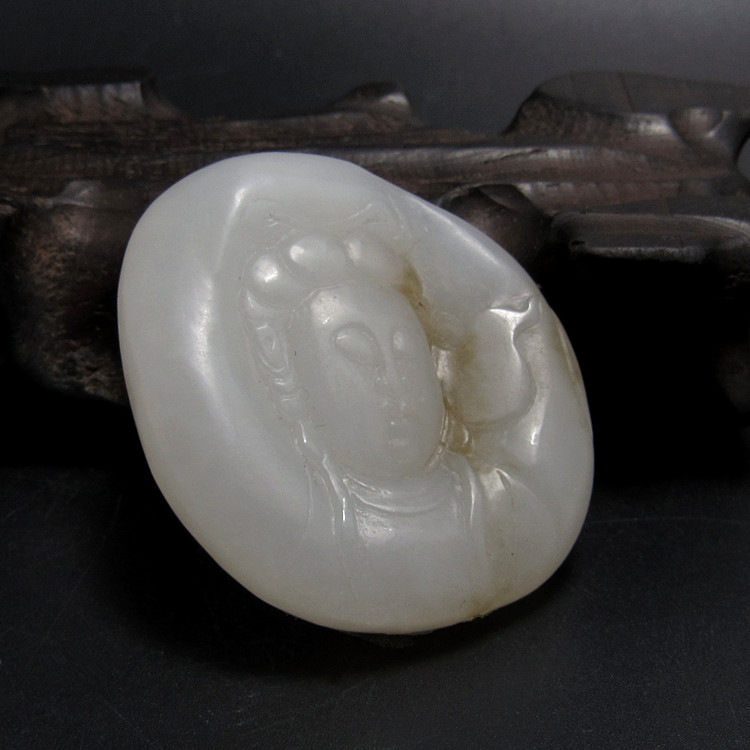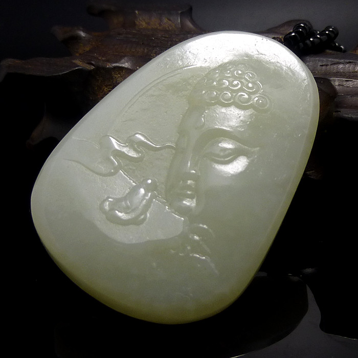 玉鉴 超值新疆和田玉苏工白玉悟道挂件释迦摩尼佛牌子吊坠送证书