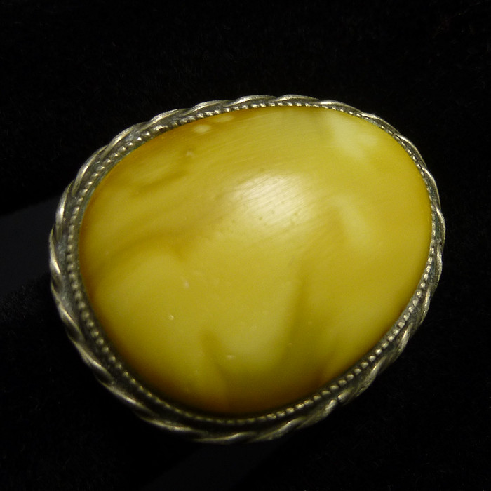 欧洲回流古玩杂项西洋老古董老首饰银镶天然鸡油黄白花老蜜蜡戒指