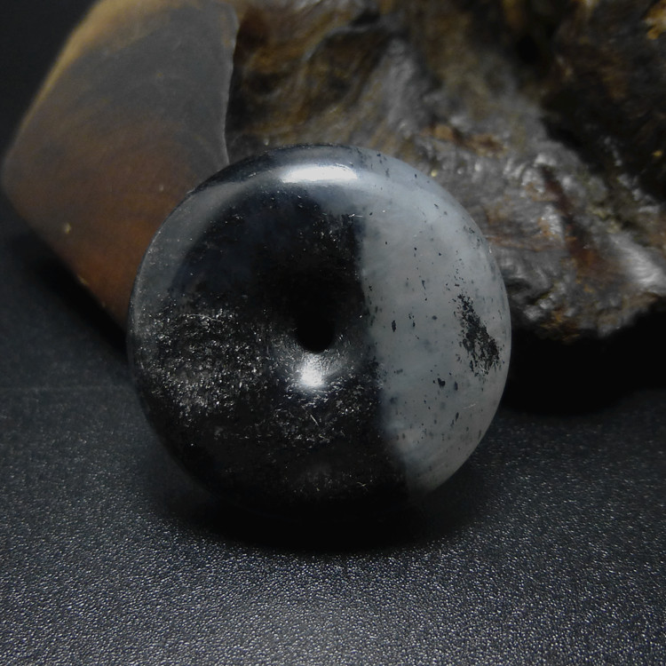 精品和田玉青花籽料黑白分明平安扣怀古挂件手串佛珠高端配饰吊坠