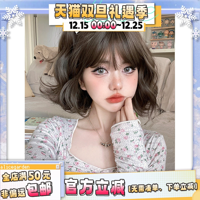 娇滴滴假发女 短卷发 BOBO头 空气齐刘海梨花头 妈妈假发自然短发