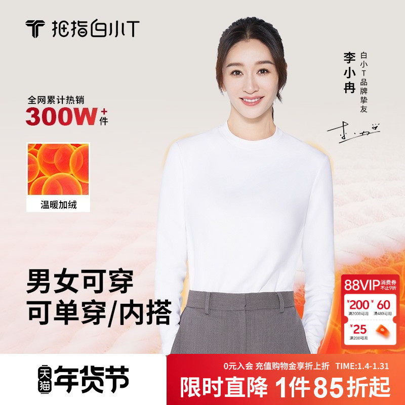 【2件】拇指白小T加绒加厚长袖t恤男女内搭上衣秋冬季保暖打底衫