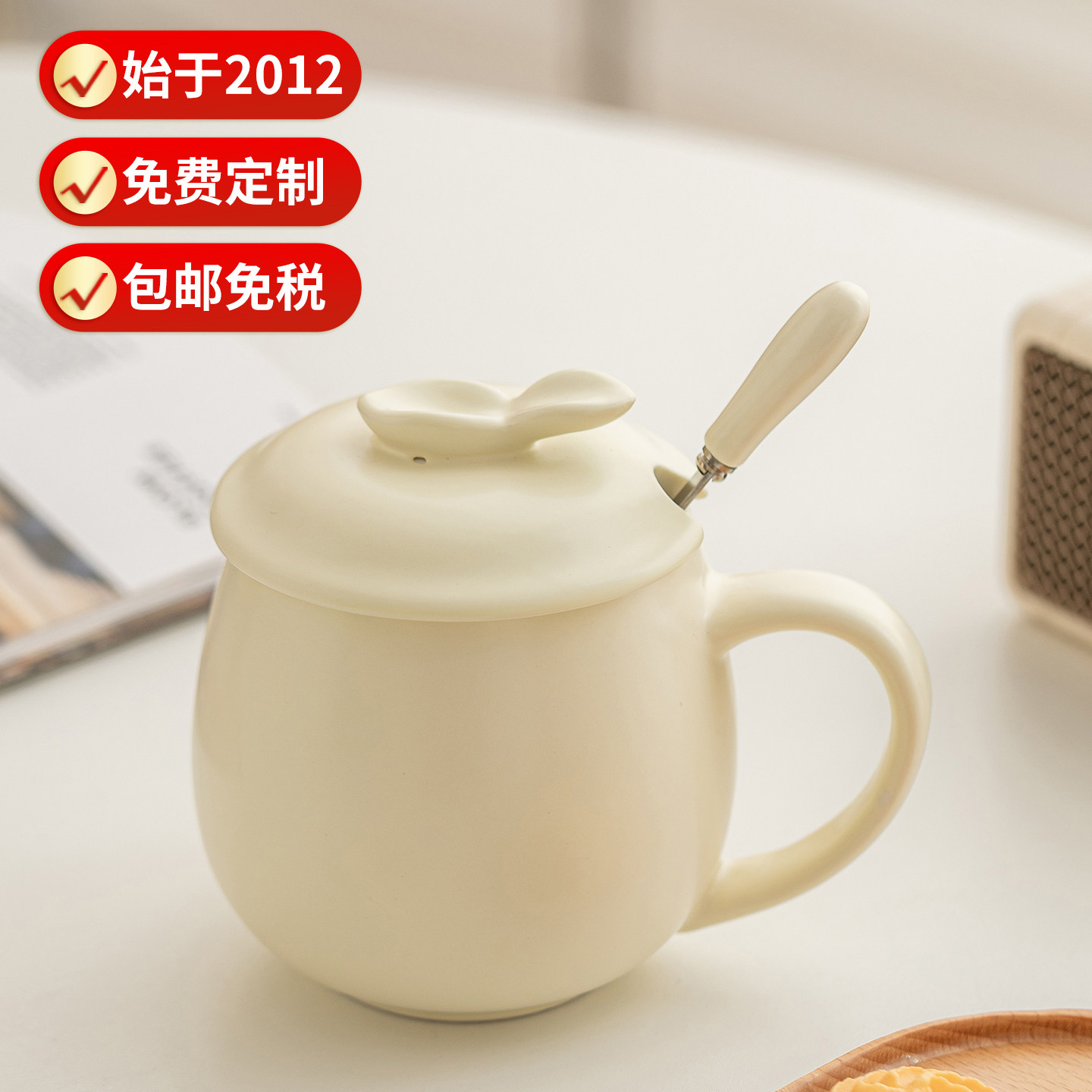 - 杯子 陶瓷 带盖勺