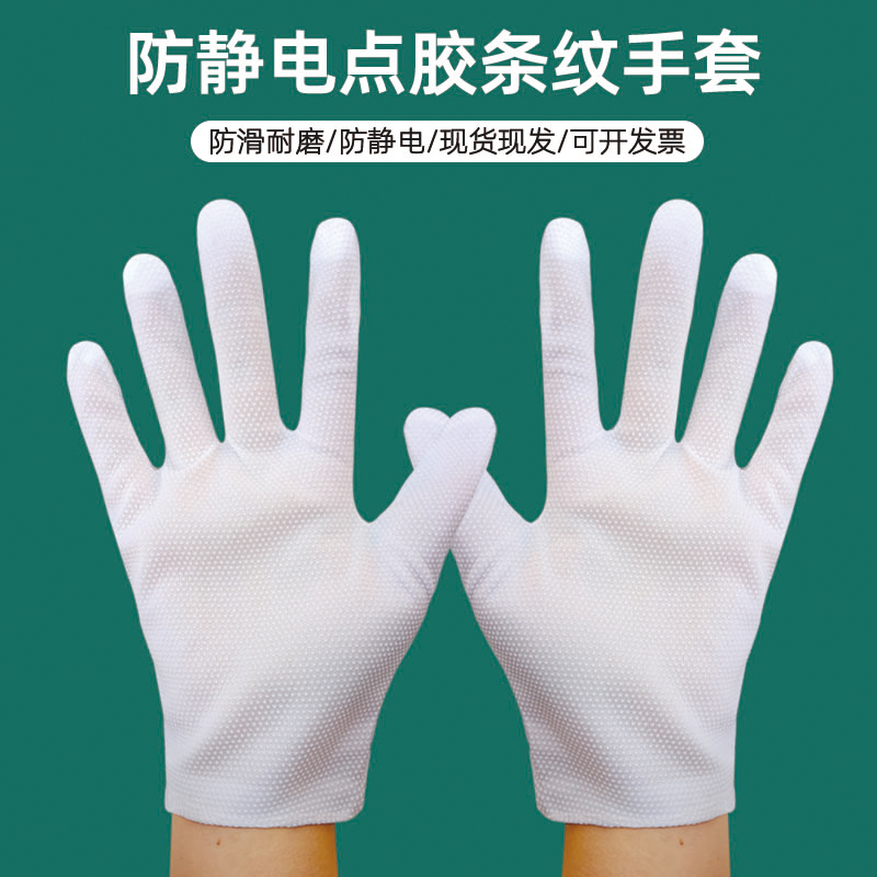 防静电手套薄款条纹点胶手套女男电子厂专业手机维修点塑静电手套