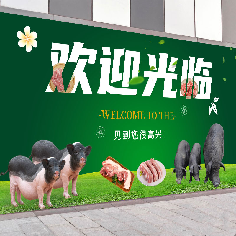 菜市场商铺广告牌超市生态农家土猪肉黑猪肉墙贴摆摊车贴宣传海报