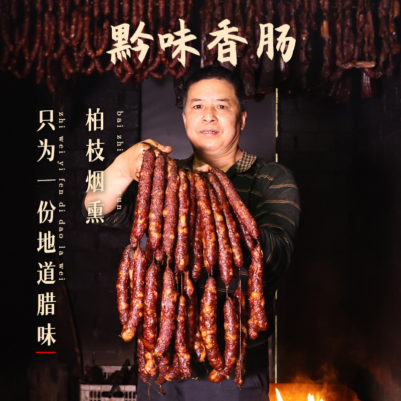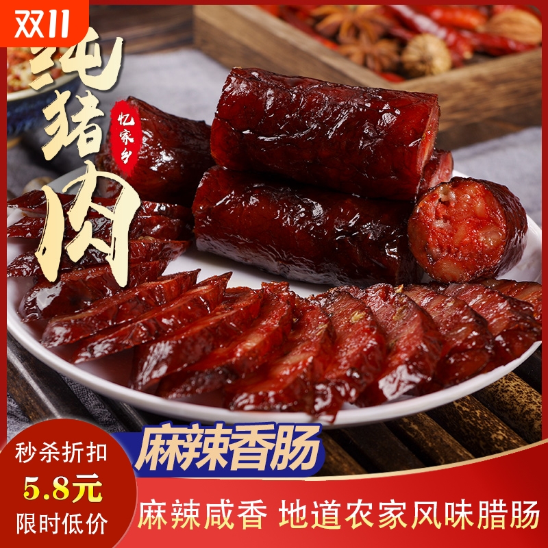 四川家乡特产川味麻辣腊肠香肠农家土猪肉烟熏腊肉无淀粉纯肉香肠
