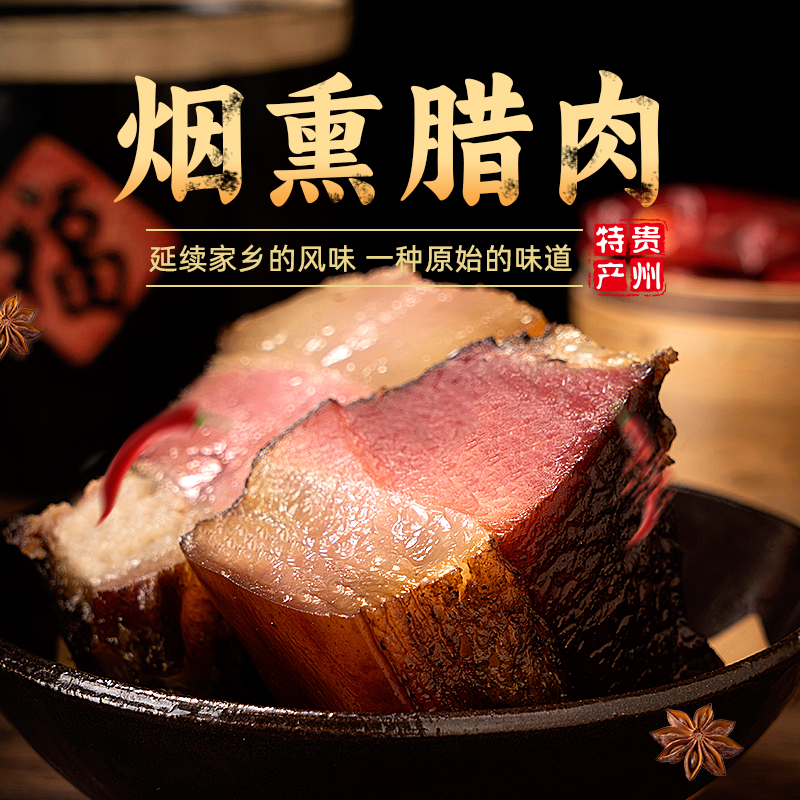 贵州特产腊肉遵义农家土猪肉五花老腊肉农家柴火烟熏后腿肉500克