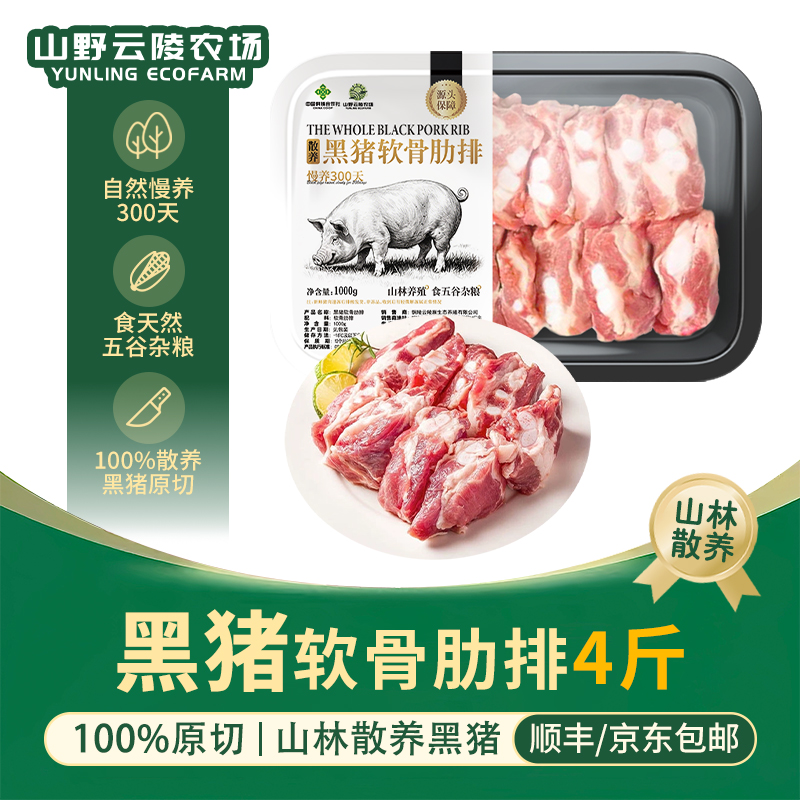 山野云陵农场散养黑猪软骨肋排1000g×2盒新鲜原切脆骨农家土猪肉
